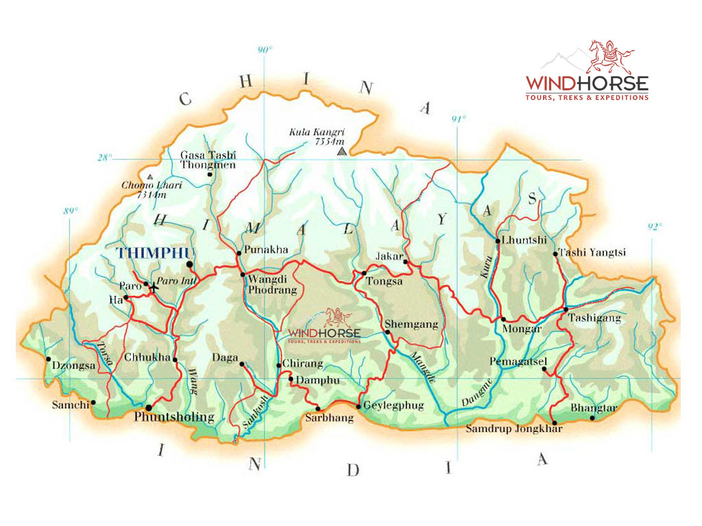 Королевство Бутан расположено на востоке Большого гималайского хребта, на границе с Тибетом и Индией. Столица страны ‑ город Тхимпху.