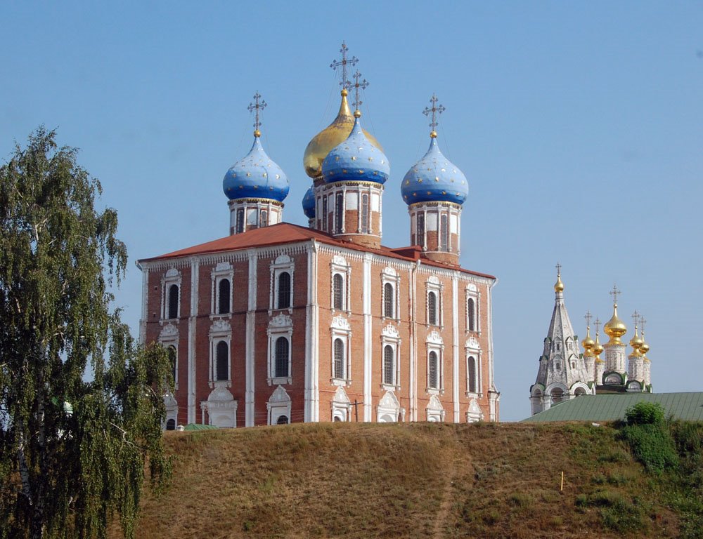 Кафедральный собор Рязани, первое каменное здание на территории кремля. Считается, что его начали возводить в XIV веке при Олеге Рязанском.