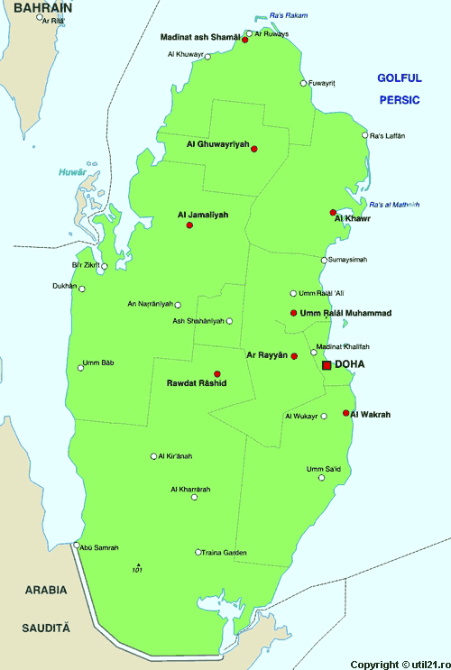 Катар — ближневосточное государство на побережье Персидского залива, граничащее с Саудовской Аравией. Морские границы Катара также делают его соседом ОАЭ на юге и островного государства Бахрейн на севере.