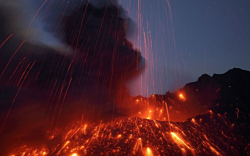 Сакурадзима – один из самых активных вулканов в Японии. Расположен он на полуострове рядом с крупным городом Кагосима. Извержения там происходят регулярно. Прошлое было в декабре, позапрошлое – в июле.