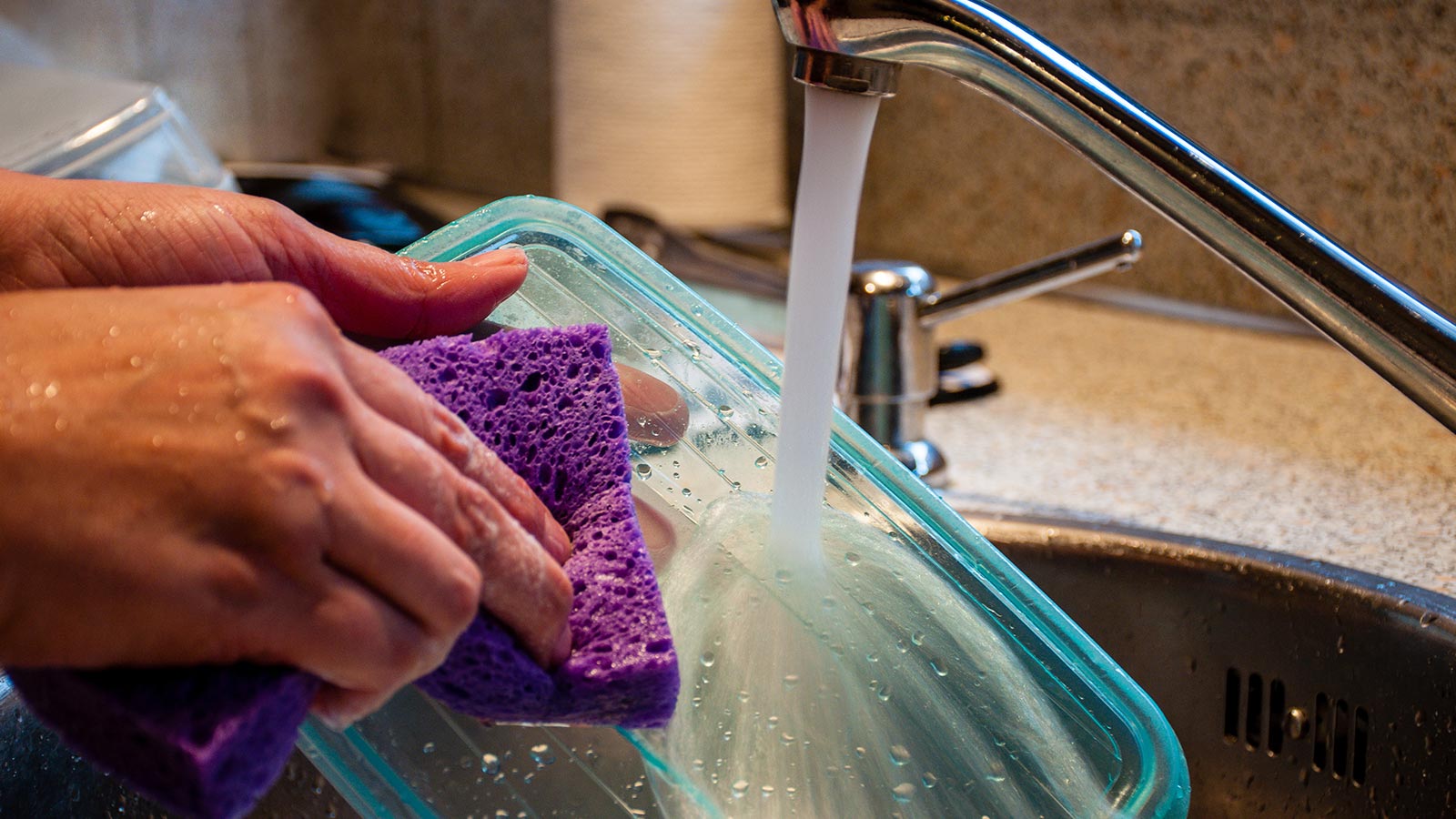 Прежде, чем вы вымоете контейнер в теплой воде с чистящим средством, сполосните его в холодной. Это предотвратит впитывание неприятного запаха от соуса, яйц, подливы в стенки пластиковой тары.