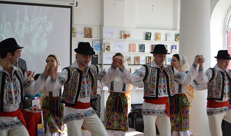 Устное народное творчество представлено календарной и семейной обрядовой поэзией, сказками, героическим эпосом, историческими, лирическими и другими песнями, пословицами, поговорками. Крупнейший памятник лиро-эпической народной поэзии — баллада «Миорица»[18]. Народные песни преимущественно одноголосные, в некоторых районах (в основном, на границе с Украиной) — двухголосные. Наиболее распространённые музыкальные инструменты — кобза (струнный), най (духовой типа флейты Пана), чимпой (волынка), скрипка [19]. Традиционные танцы — хора, жок, молдовеняска; исполняются обычно в сопровождении оркестра.