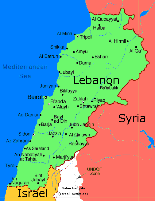 Ливан граничит на севере и востоке с Сирией, на юге с Израилем и на западе омывается Средиземным морем.