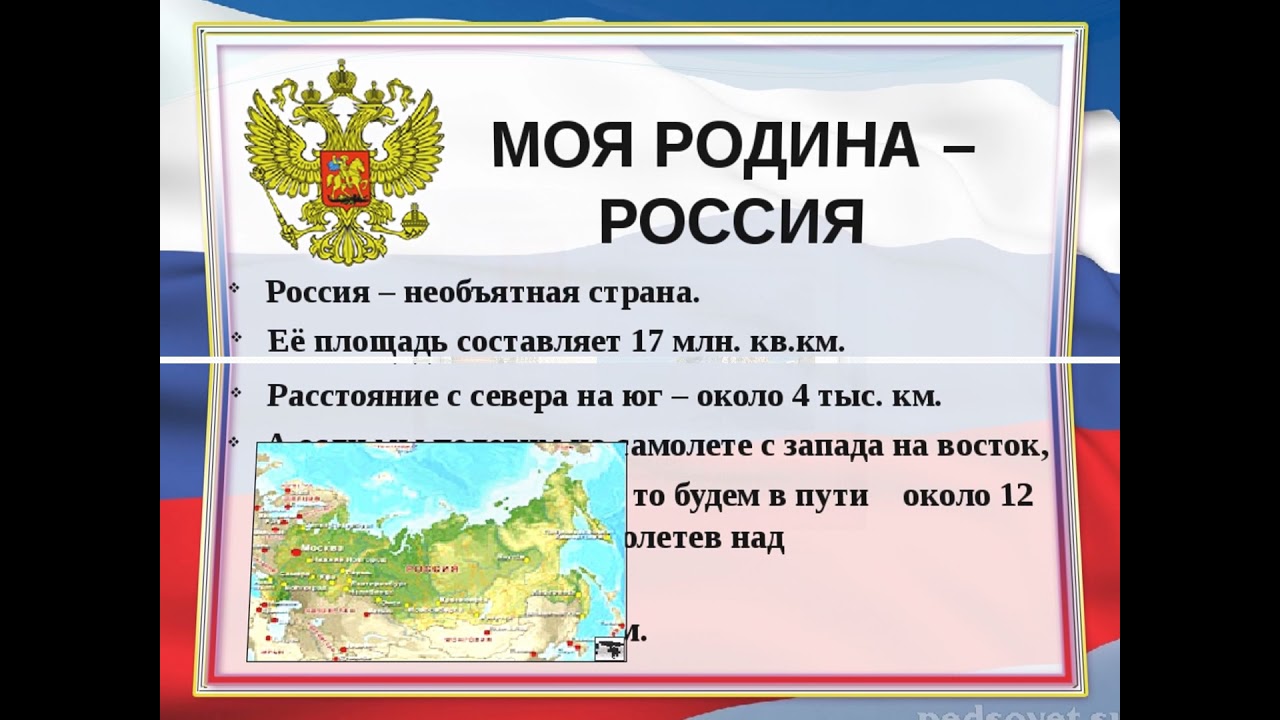 Наше отечество, наша Родина – матушка Россия. Отечеством мы зовём Россию потому, что в ней родились, жили наши отцы и деды. Родиной мы зовём её потому что в неё мы родились, а матерью – потому, что она вскормила нас своим хлебом, вспоила своими водами, выучила своему языку. Много есть на свете и кроме России всяких хороших государств, но одна у человека родная мать, одна у него и Родина.