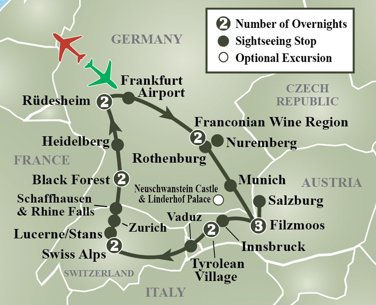 Поезд , идущий по маршрутам «Мюнхен — Фюссен» или «Зальцбург — Фюссен», будет стоить столько же. Чтобы успеть всё осмотреть, никуда не торопясь, нужно из Мюнхена выезжать на семичасовом поезде. Но, если вы опаздываете, то не волнуйтесь — рейсы через каждый час.