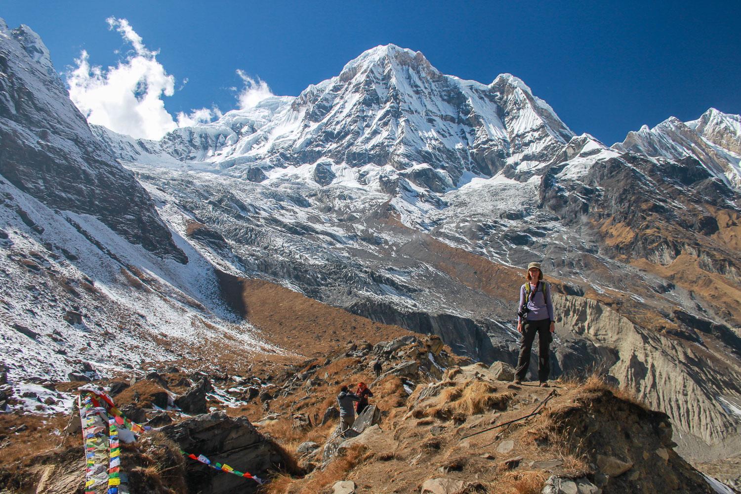 Драматические виды на горы по пути к амфитеатру АннапурныТрек к базовому лагерю Аннапурны приведет вас вглубь массива Аннапурны к подножию Южной Аннапурны. Пейзаж сильно отличается от большинства других классических походов, потому что вид менее обширный и более вертикальный: вы смотрите почти прямо вверх, чтобы увидеть горы, возвышающиеся над вами.
