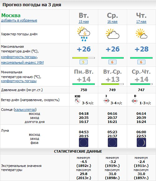 Подготовьте свои вещи к своему пребыванию, взглянув на прогноз погоды для Москвы и средней полосы России.