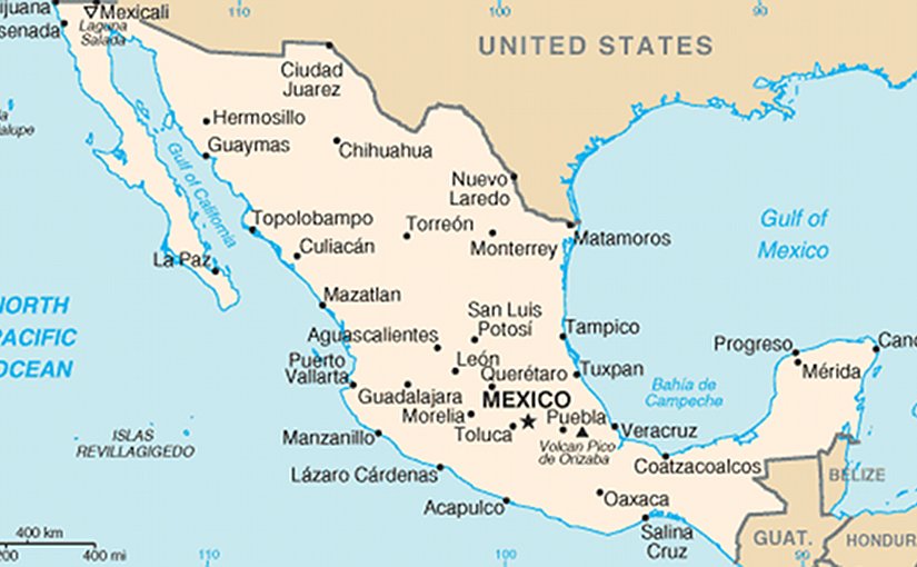 Мексика находится на юге континента Северная Америка. На юге граничит с Белизом и Гватемалой, на севере — с США.