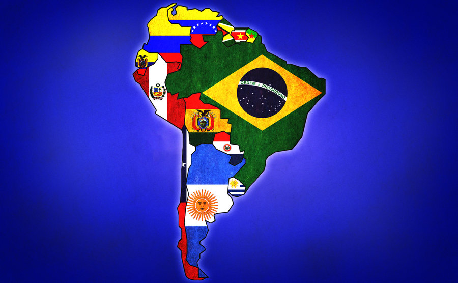 Южная Америка, соседний регион южного полушария, присоединенный к Северной Америке, состоит из двенадцати стран, Аргентины, Боливии, Бразилии, Чили, Колумбии, Эквадора, Гайаны, Парагвая, Перу, Суринама, Уругвая и Венесуэлы.
